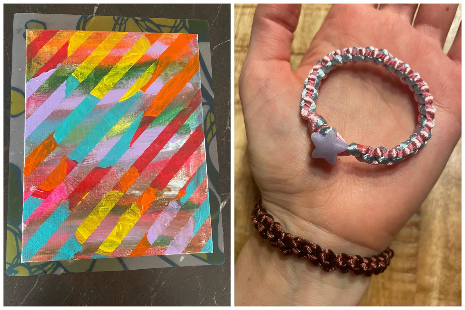Nach dem ersten Anstrich (wenn das Bild trocknen muss), häkeln wir ein cooles Armband